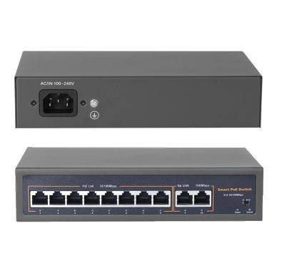 LANケーブルを通じてデータ通信と同時に対応機器(カメラ)へ電力供給(Power over Ethernet)ができる集線装置です。 コンセントがない場所でもIPカメラや無線AP、IP電話などをケーブル1本で稼働できます。